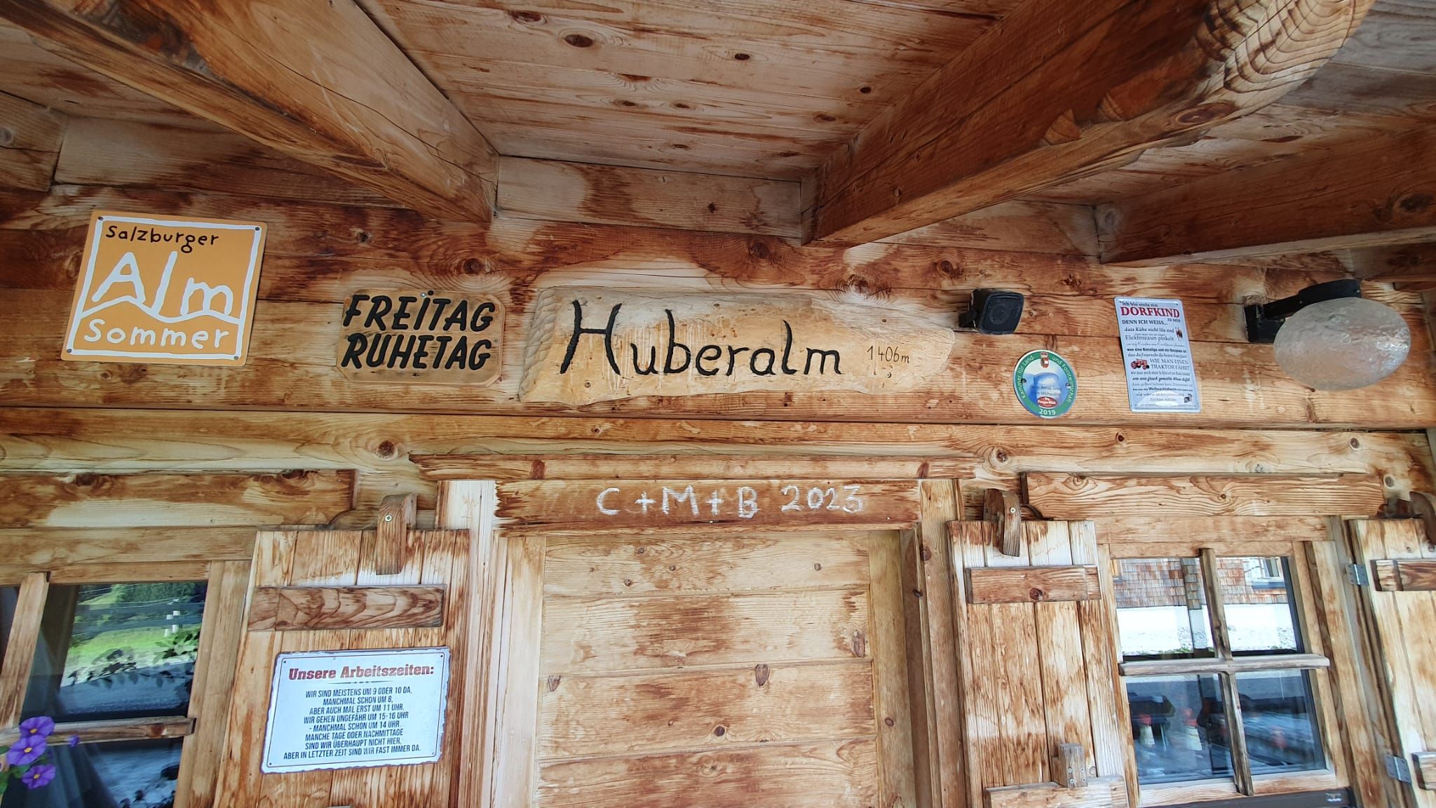 Die Huberalm verwöhnt ihre Gäste im Winter mit traditionellen Schmankerln und ist ein beliebtes Ziel für Wintersportler inmitten der verschneiten Natur und Berge.